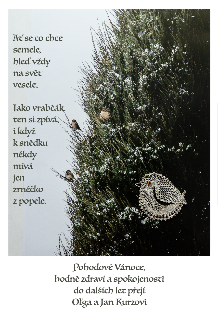 Paličkovanou krajku jsme zvyklí vídat na tmavém, jednobarevném podkladu. Jak to ale vypadá, když se upaličkovaný motiv položí na vhodnou fotografii, nebo, když se naopak vytvoří fotografie pro daný motiv? Manželé - Oľga a Jan Kurzovi - se o to pokusili. Od roku 2022, kdy začali se společnou tvorbou, se prezentovali na výstavách: Infocentrum Blatná, Tvrz Lnáře (2x), Zámek Holešov, Dům kultury Kroměříž, Společenské centrum Brno-Lesná, Malá galerie LÍPA Brno-Líšeň.